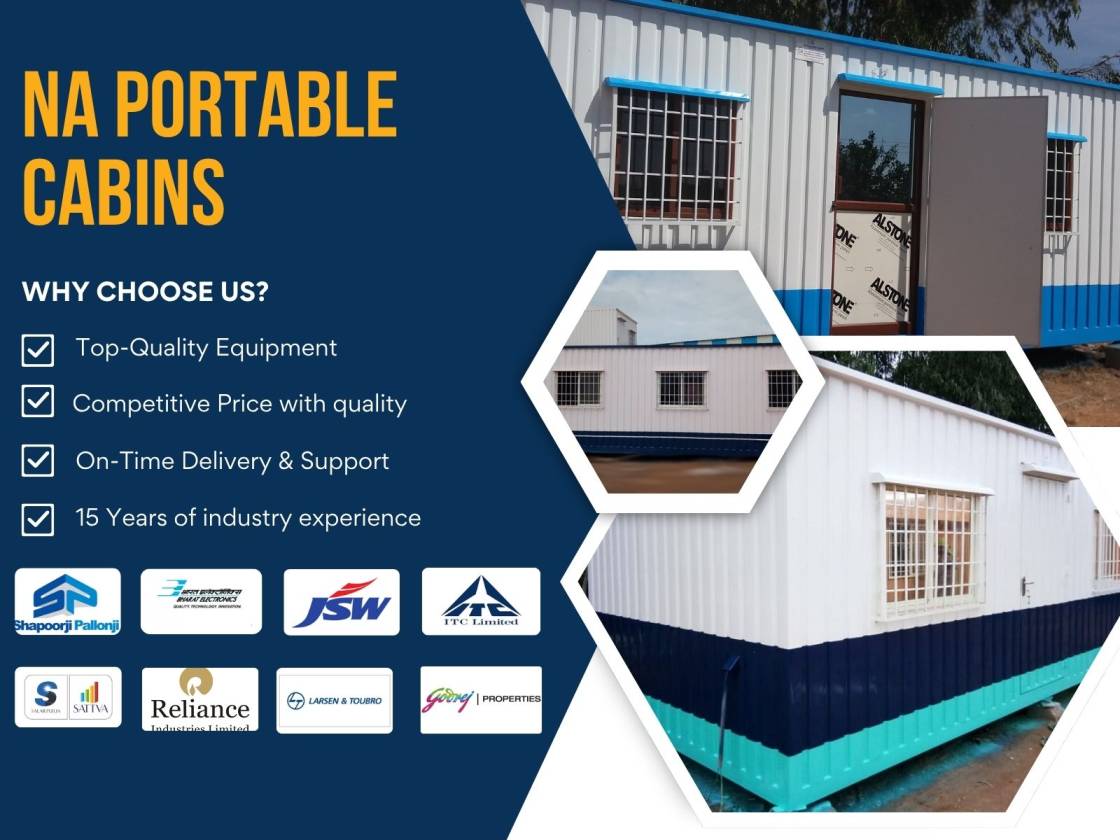 N A Portable Cabins is a leading provider of premium portable cabins in Bangalore and Hyderabad offering innovative solutions to meet diverse space requirements. Our cabins are expertly designed to serve a variety of purposes, including temporary offices, on-site accommodations, storage units, and more. Built with high-quality materials, our portable cabins are durable, functional, and stylish, making them the preferred choice for industries such as construction, events, retail, and education.